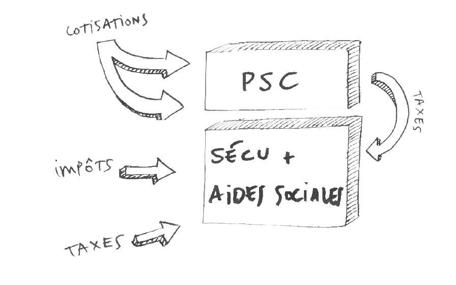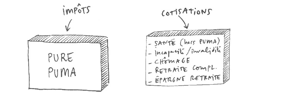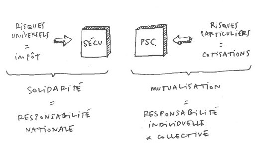 –> Flécher les impôts (création d’une CSG entreprises / TVA sociale) vers le financement de la solidarité. Flécher les cotisations vers le financement des garanties particulières.